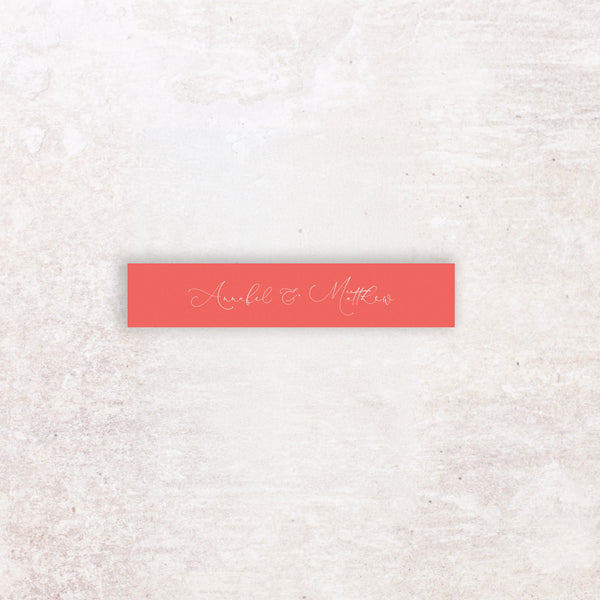 Enhance your invitations with this coloured belly band, customisable with your names or initials. Choose from a range of colours.
